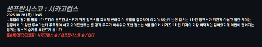 샌프란시스코 : 시카고컵스