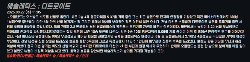 애슬레틱스 : 디트로이트