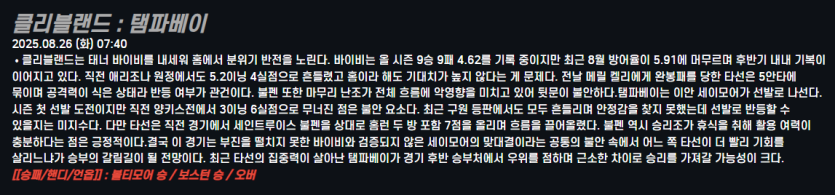 클리블랜드 : 탬파베이