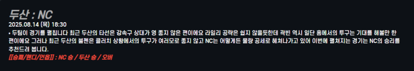 두산 : NC
