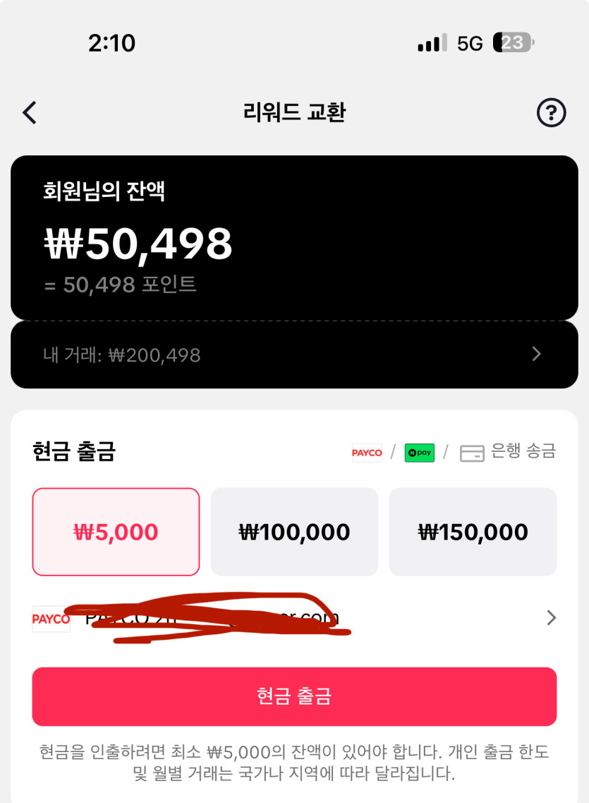 1분도 안걸리고 출금 누르자마자 돈 나옵니다. (은행계좌,페이코,네이버페이로 받을 수 있음) 기프티콘도 구매 가능