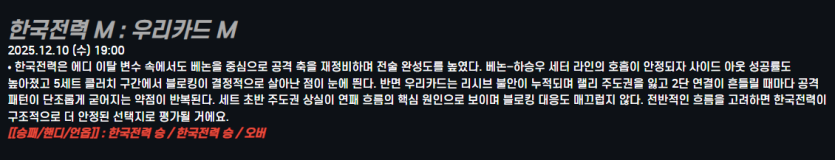 한국전력 M : 우리카드 M