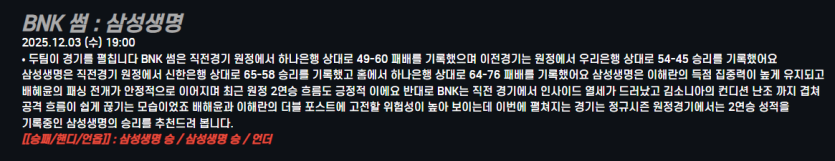 BNK 썸 : 삼성생명