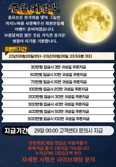 안녕하세요 카지노바입니다 다가오는 명절을 맞아 작은이벤트를 준비하였습니다.