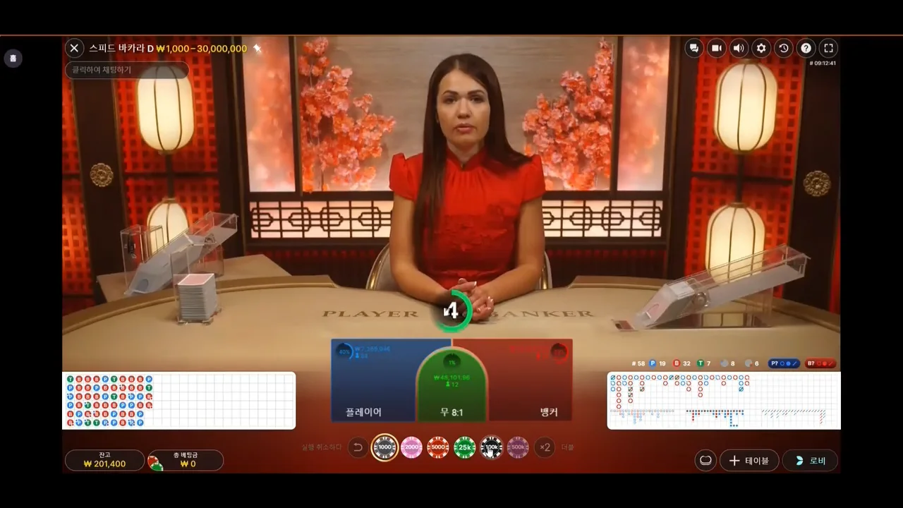 베팅도 되었고.....뱅커 승해서...뱅커에 간 내 칩도 반짝이는데.....