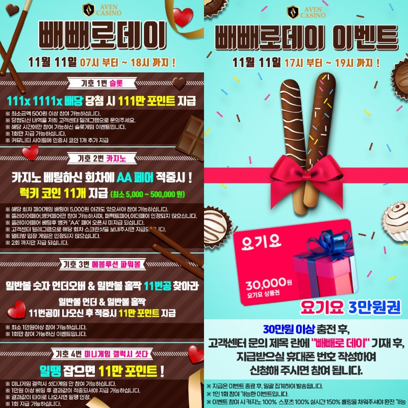 안녕하세요 아벤 카지노 빼빼로데이 이벤트