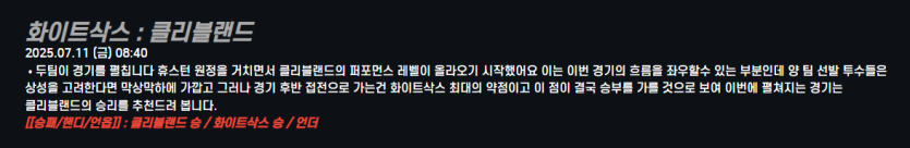 화이트삭스 : 클리블랜드
