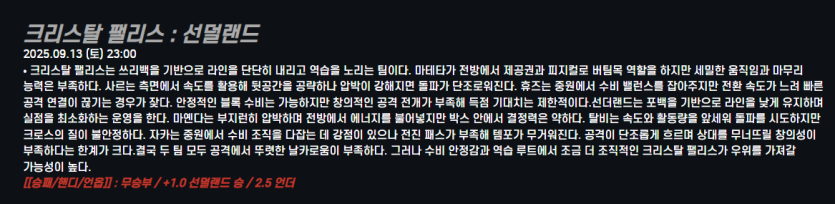 크리스탈 팰리스 : 선덜랜드