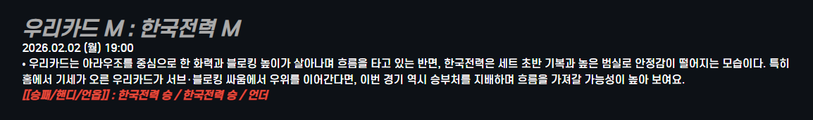 우리카드 M : 한국전력 M