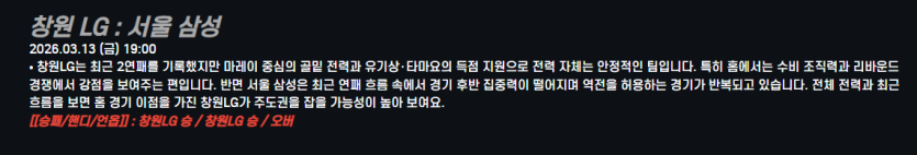 창원 LG : 서울 삼성