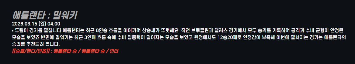 애틀랜타 : 밀워키