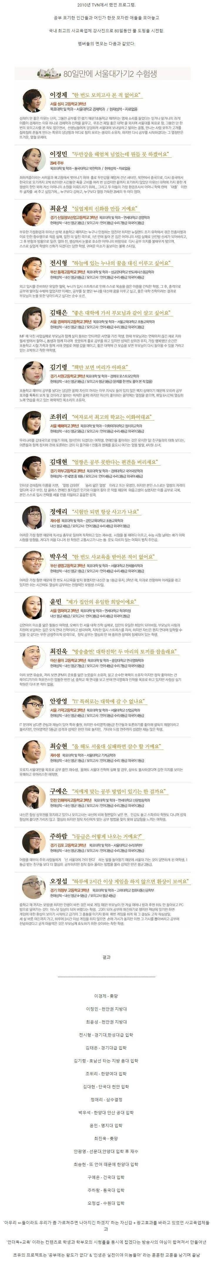 80일만에 서울대가기 프로젝트 결과