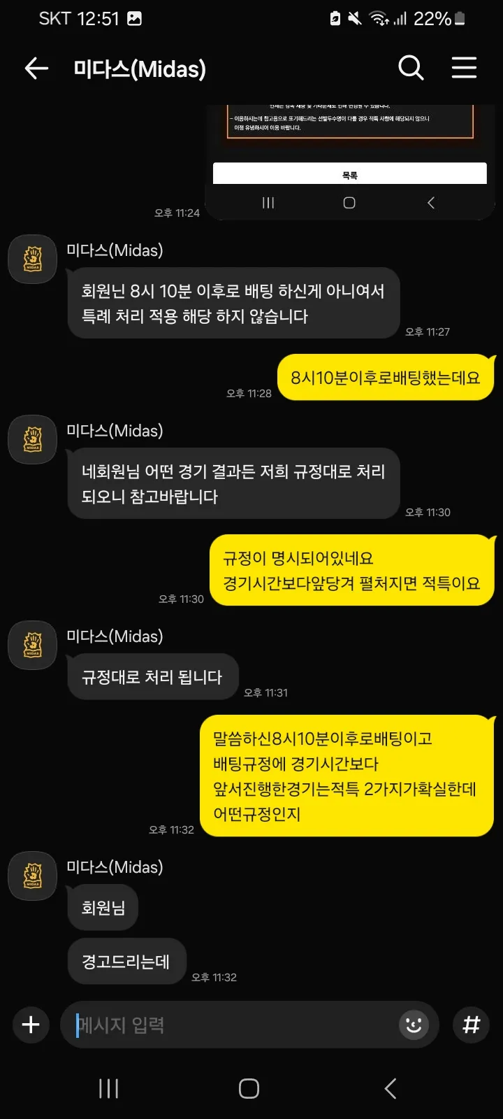 미다스 이 쓰레기 악질 구멍사이트 진짜ㅈ개역겹네요. 몇십만원 정도 따간다고 양빵드립치면서 몰수합니다. 양빵인데 먹튀당한다고 커뮤에올릴수있겠냐는 개소리ㅈㄴ하네요 진짜 개쓰레기 악질 양방강요 몰수처리 회원말은들어보지도않습니다 아니라고해도 병신들