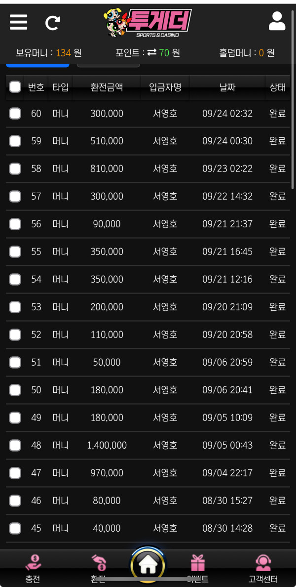 투게더 사이트 환전도 너무 잘 나오고 환전 대기시간도 없어서 대기 시간 기다리다가 다 꼴았었는데 여기는 그런게 없어서 너무 좋아요 여기 이용하면서 최고 수익 보고 있습니다 많은 이용해주세요