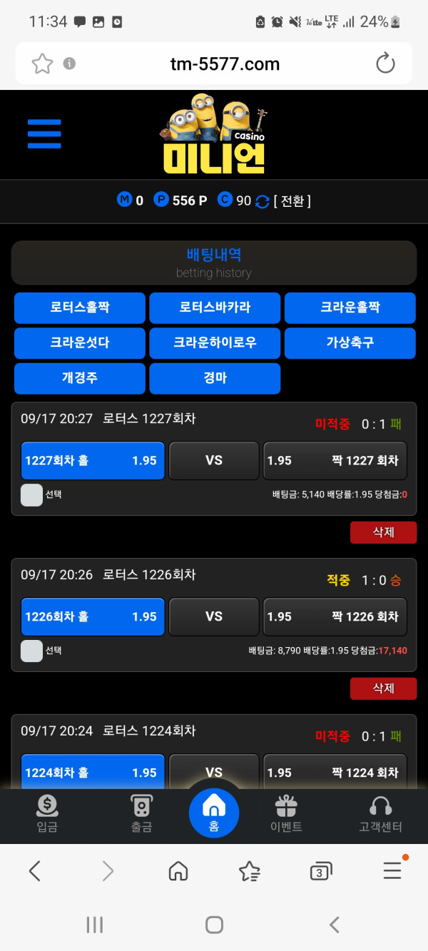 안렁하세요 미니언 사이트 후기작성합니다 제가 미니게임 로투스홀짝을 하는데 미니언이란곳을아케되어 가입을했는데 전에 제가이오ㅡㅇ하던곳은 무조거 300프로롤링인데 여기는 100프로만 롤링을하여도 바로 쏸전되고 센터문의하면 친절하게 답변도해주십니다 미니게임좋아하시는분들은 한번 이용을해보십시요