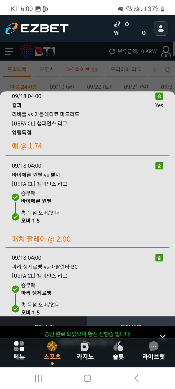 적중 했네요 이지벳은 배당도 높고 다폴더 추가 보너스도 있어서 더 많이 먹었네요~~