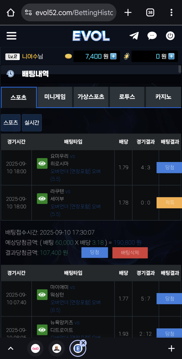 현재 제일 자주 이용하는 사이트입니다 다양한 이벤트가 현재 진행중인데 그중에서 저는 스코어 맞추기 이벤트를 좋아합니다 일정금액을 입금하면 이용할수있는데 유저들을 위해 다양한 이벤트로 많이 주는 사이트입니다 다들 한번식 이용해봇세요