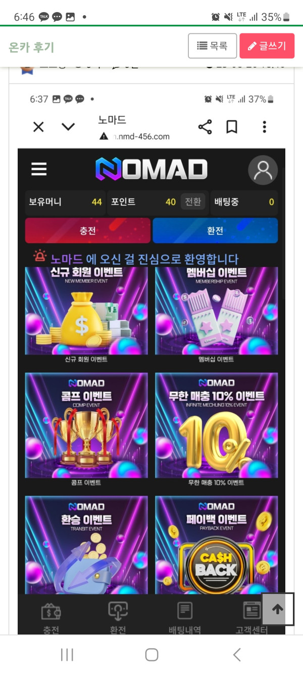 노마드란 사이트를 알게되면서 정말 이렇게 잘맞는 사이트는 첨입니다 이득을 계속 보고있습니다. 이벤트 또한 다양한 이벤트도 있구요. 무엇보다 고객센터분들이 친절합니다.