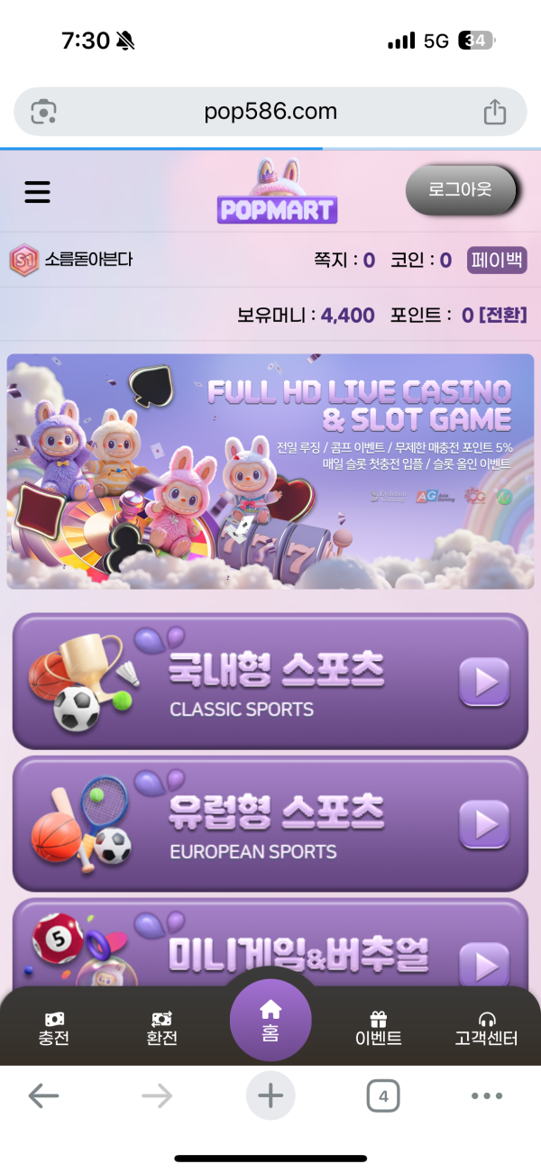 최근에 자주이용 하는곳인데 사이트 깔금하고 충환전빠르고