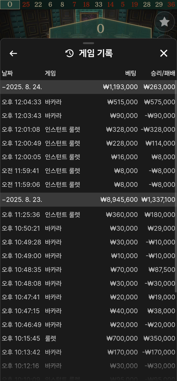 룰렛 했는데 강벳먹고 그다음에서 욕심 내니 바로 죽더