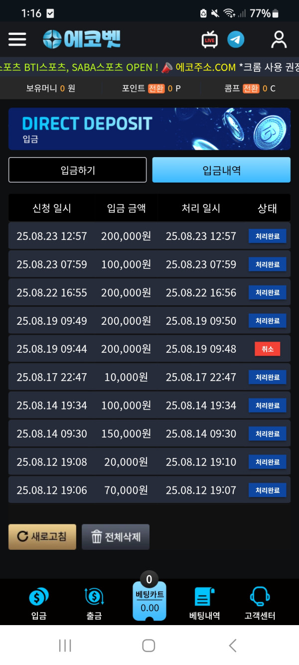 이벤트도 다양하고 입금도 카카오페이라 간편하네여