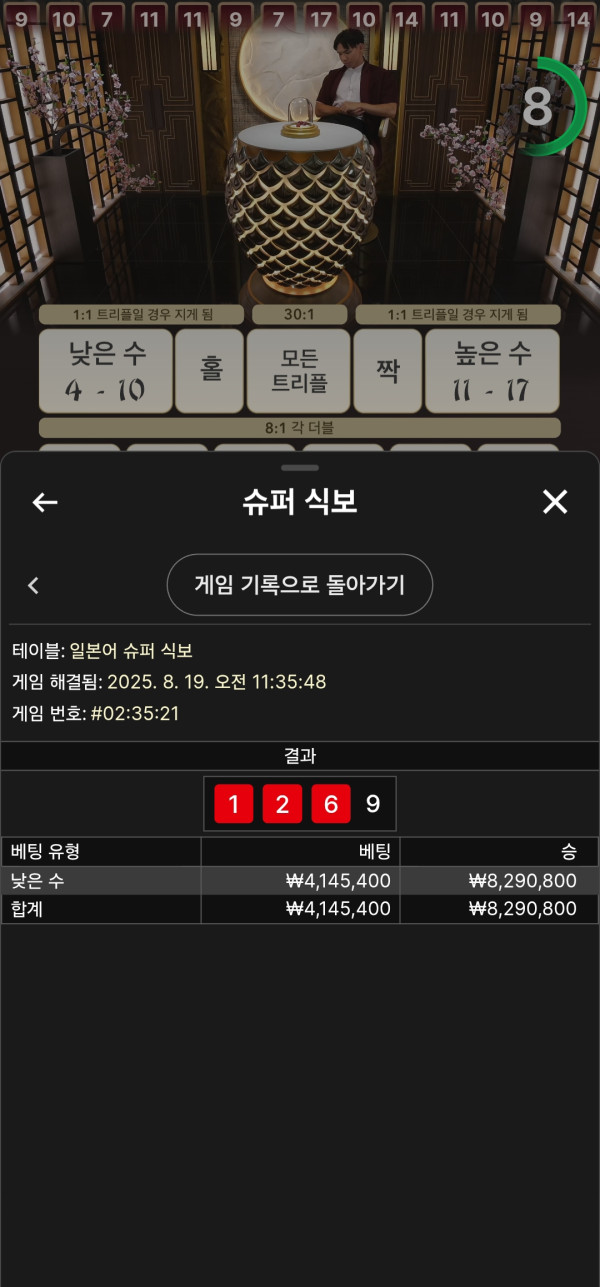 카라 안맞아서 식보로 강승부 갔는데 들어왔네여