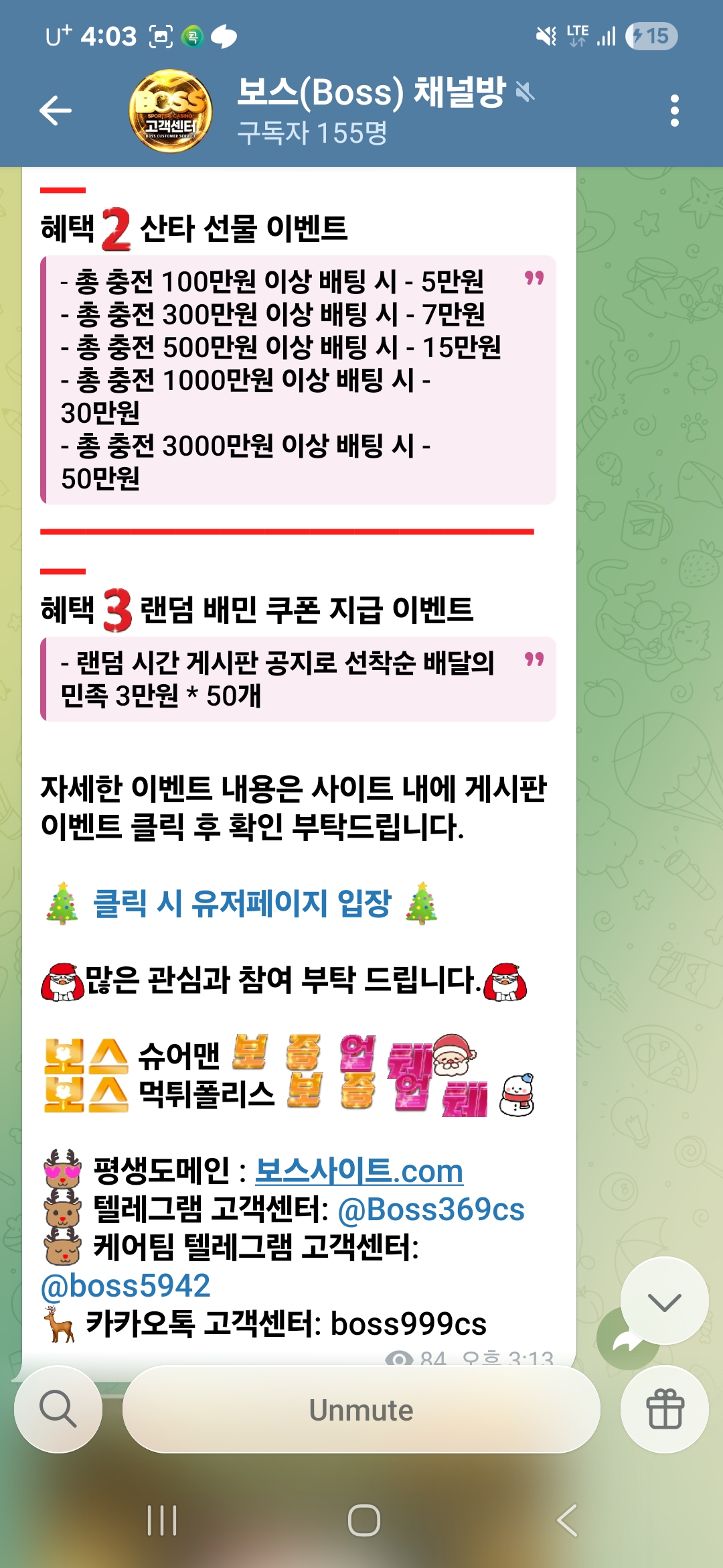 현재 1년정도 이용중입니다 크리스마스 기념으로 이벤트 붙임파일처럼 여러가지 이용가능하구요 게시판이벤트 미니게임이벤트등 아주많습니다 환전은 말할것도 없구요 ㅎㅎ 한번 보시고 이용하러 와주시면 후회는 안합니다 ~~