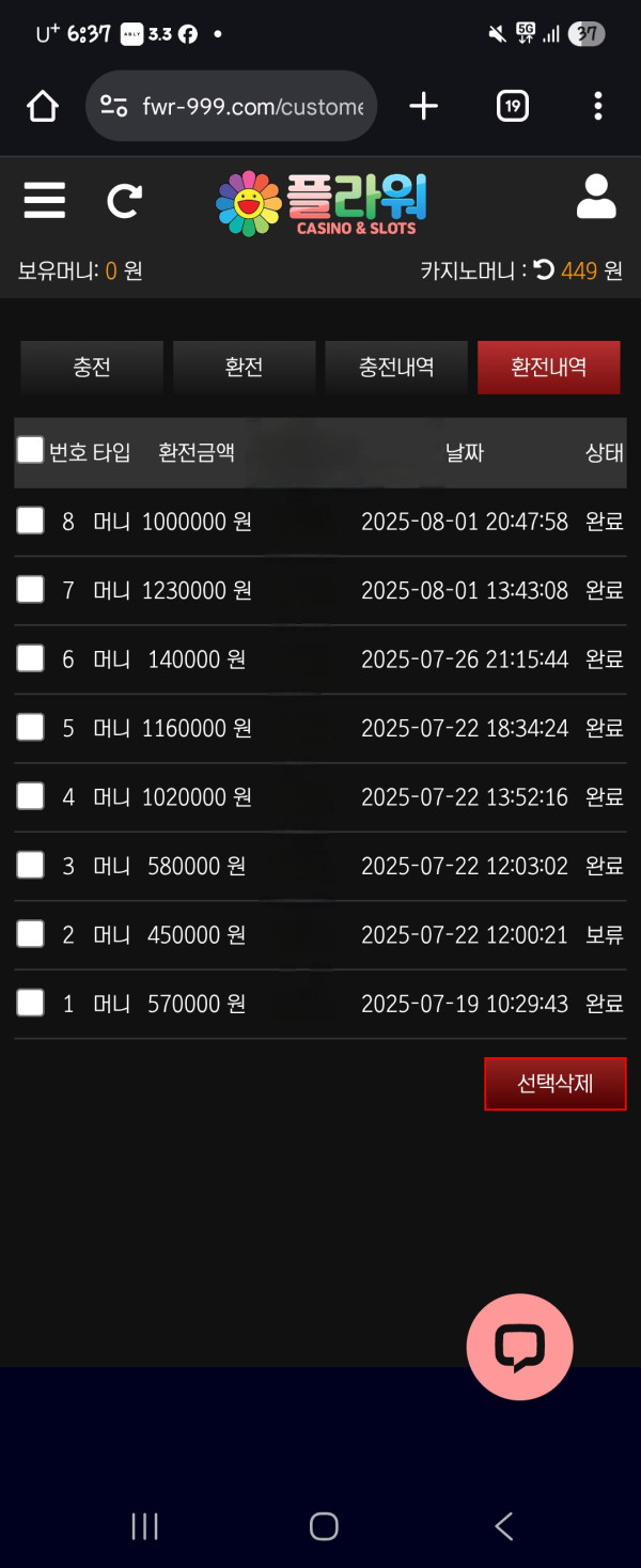 플라워 이용중인데 환전이나 충전도빠르고
