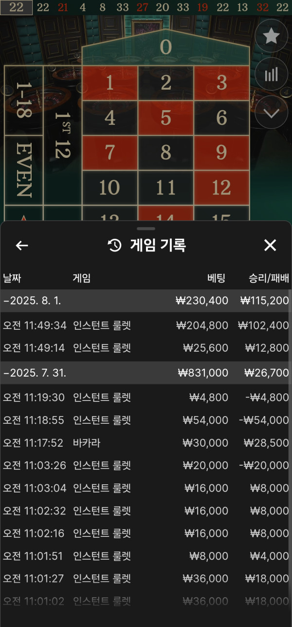 첫베팅 스무스하게 먹고 , 두번째베팅 깡치기했는데