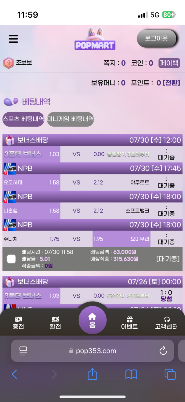 무엇보다 놀랐던 건 충전 포인트를 넉넉하게 제공해줘서, 처음 시작할 때부터 여유 있게 베팅을 즐길 수 있었다는 점입니다.