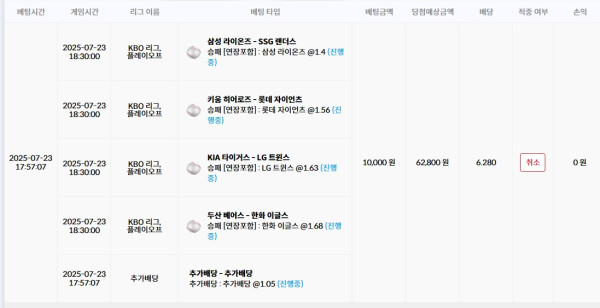 나머지 경기 승패로 배팅 완료