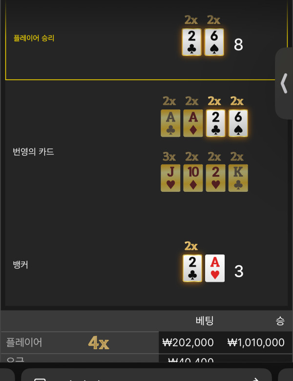 오늘 계속 먹죽먹죽하고 배당바카라라는게 배당이 안나오면 수수료만 빨리는 게임이죠 ..하지만 마지막 순간 4배당이 붙어줘서 소소하게 먹어봤네요 다른곳과는 다르게 배당을 먹고 환전을 해도 돈이 금방들어오고 충전도 빨라서 이용하기가 넘편한거 같아요 다들 시간나시면 한번 오셔서 각종이벤트등 경험하시면 넘좋을거같습니다 그럼 날씨도 더운데 다들 더위 조심하시고 항상 좋은일만 있으셨음 좋겠습니다 감사합니다