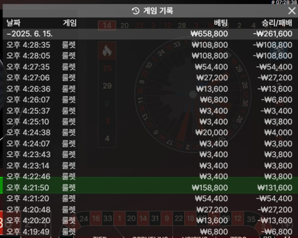 마지막에 연패로 오링