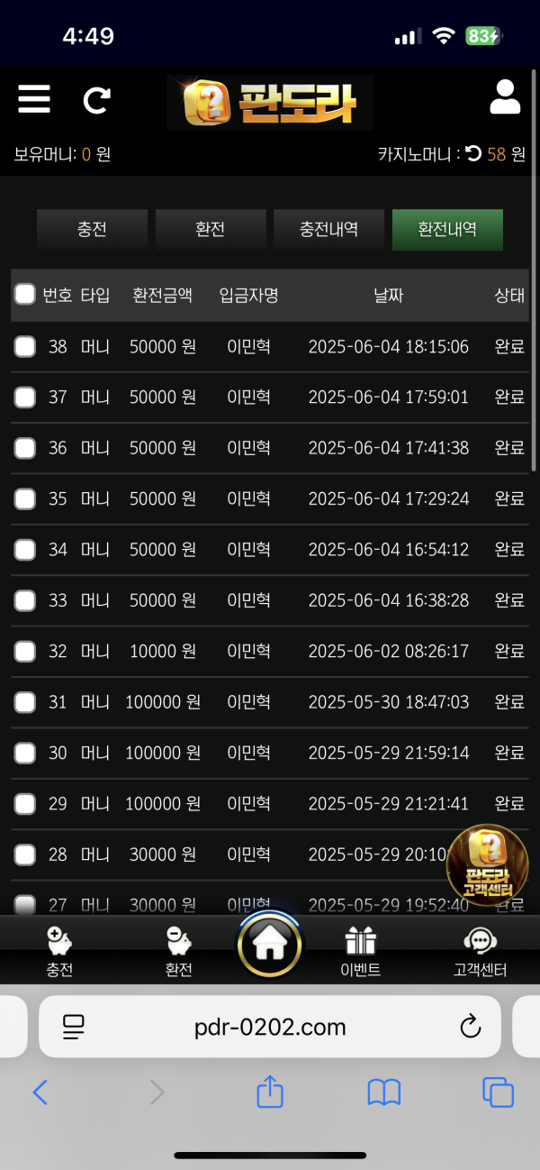 2 충전 환전 속도가 빠르다