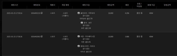 각각 2폴 배팅