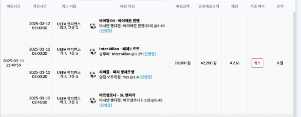 내일 챔스 경기 배팅....
