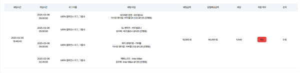 챔스 승/패로 재배팅