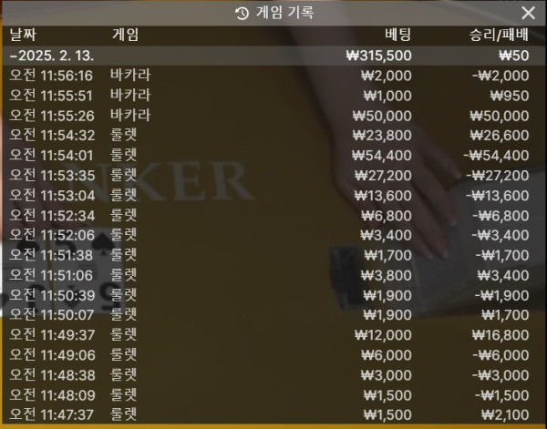 바카라 깡으로 본전출금....