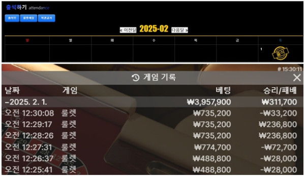 2월의 첫출석은 룰렛으로 다녀왔네요