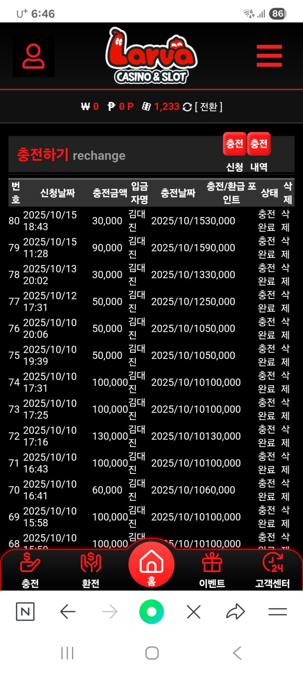 기존 유저 무한입플 충전왕 이벤트