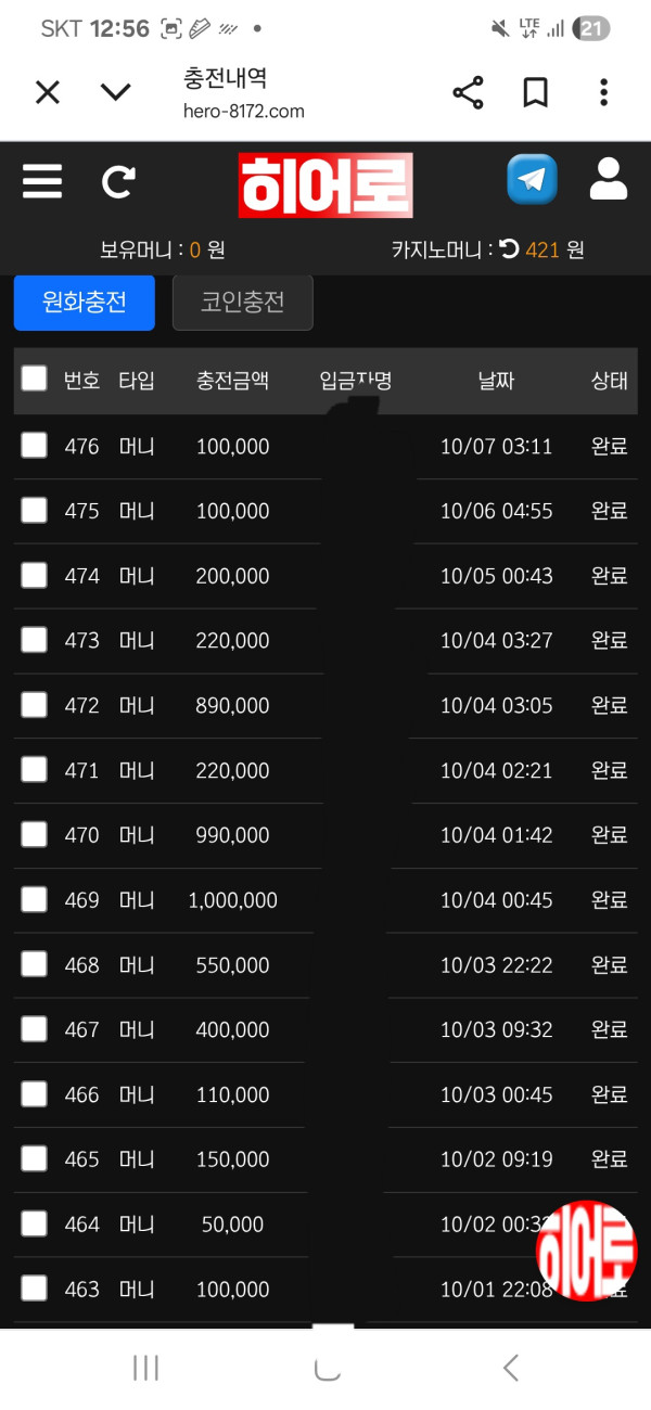 여기 꾸준히 이용중인데 이벤트 많고 환전 사고없이 잘나와요