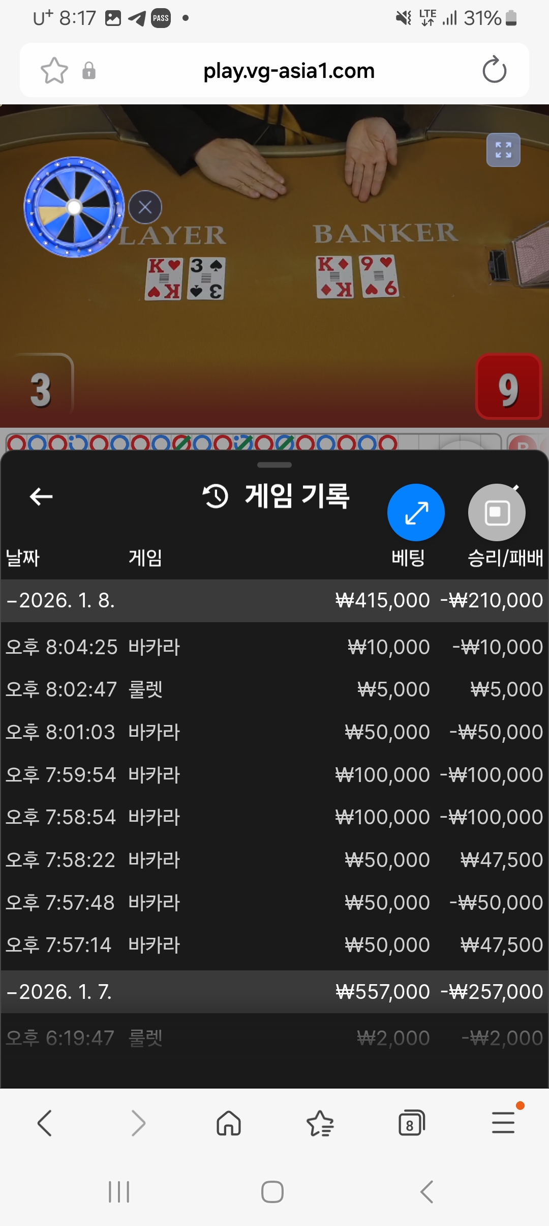 바카라갸 될때는. 잘되는데