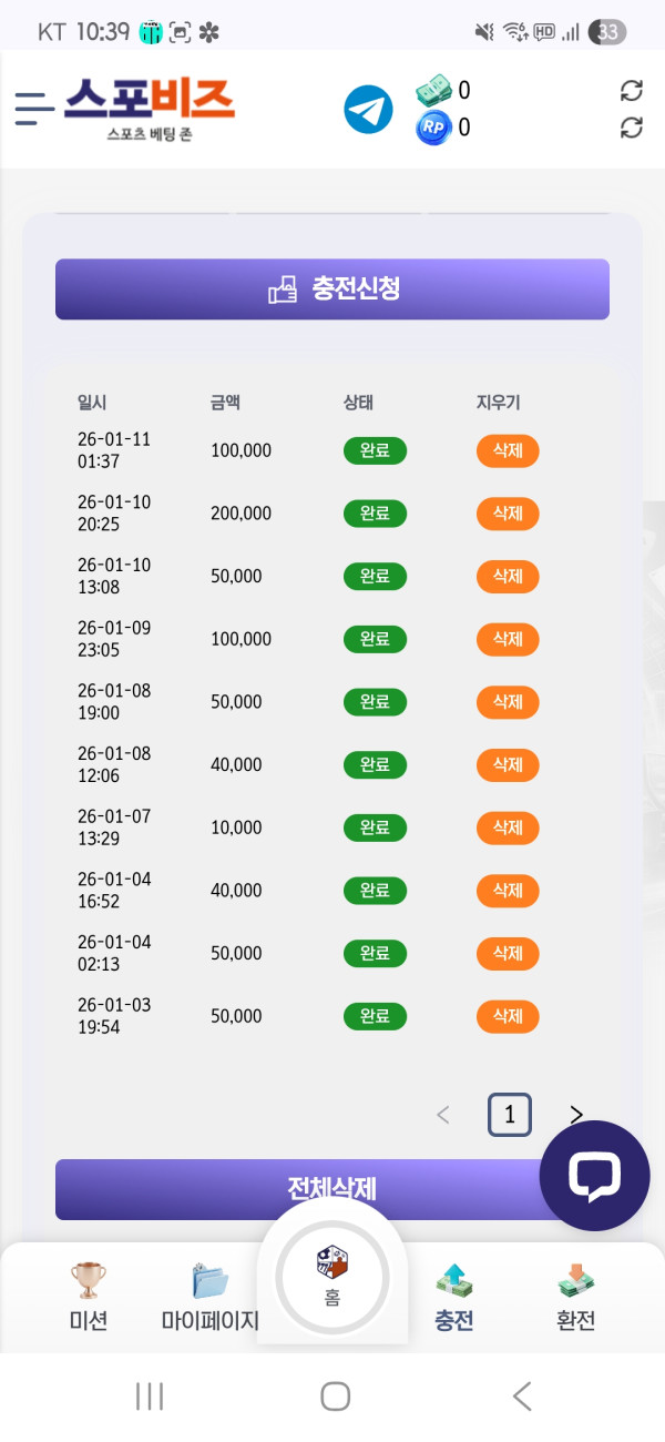 스포츠나 슬롯 등등 따로 미션포인트로 지급되니